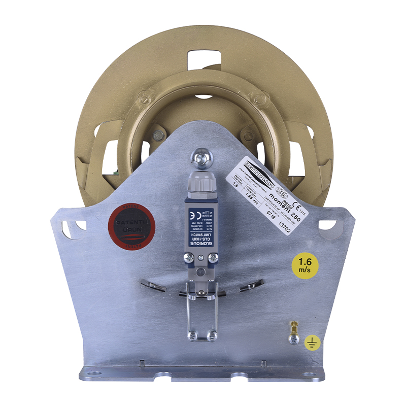 LF-02+A3 asansör hız regülatörü, kabinin nominal hızın üzerine çıkması durumunda paraşüt mekanizmasını devreye sokarak kontrollü bir duruş sağlar.