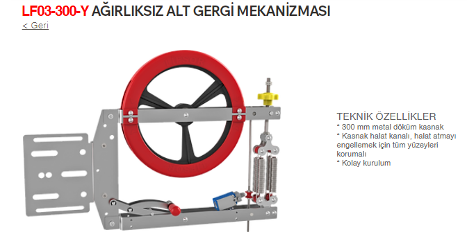 LF-06 A asansör alt gergi mekanizması, hız regülatör halatının kuyu dibinde sabit ve belirli gerginlikte kalmasını sağlayarak halatın kasnak üzerindeki slip riskini ortadan kaldırır.