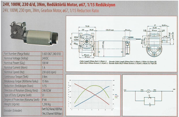 24V 100W Enkoderli Asansör Kabin Kapı Motoru
