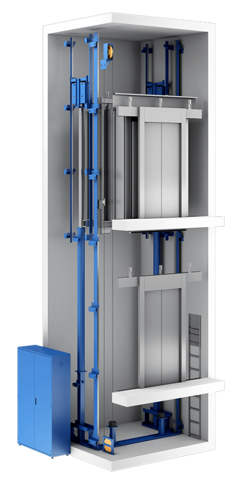 Hydraulic Roped - Twin Piston Holeless (HADI), a suitable solution for customised options for vertical transportation of passenger and freight applications, for rise up to 84ft.